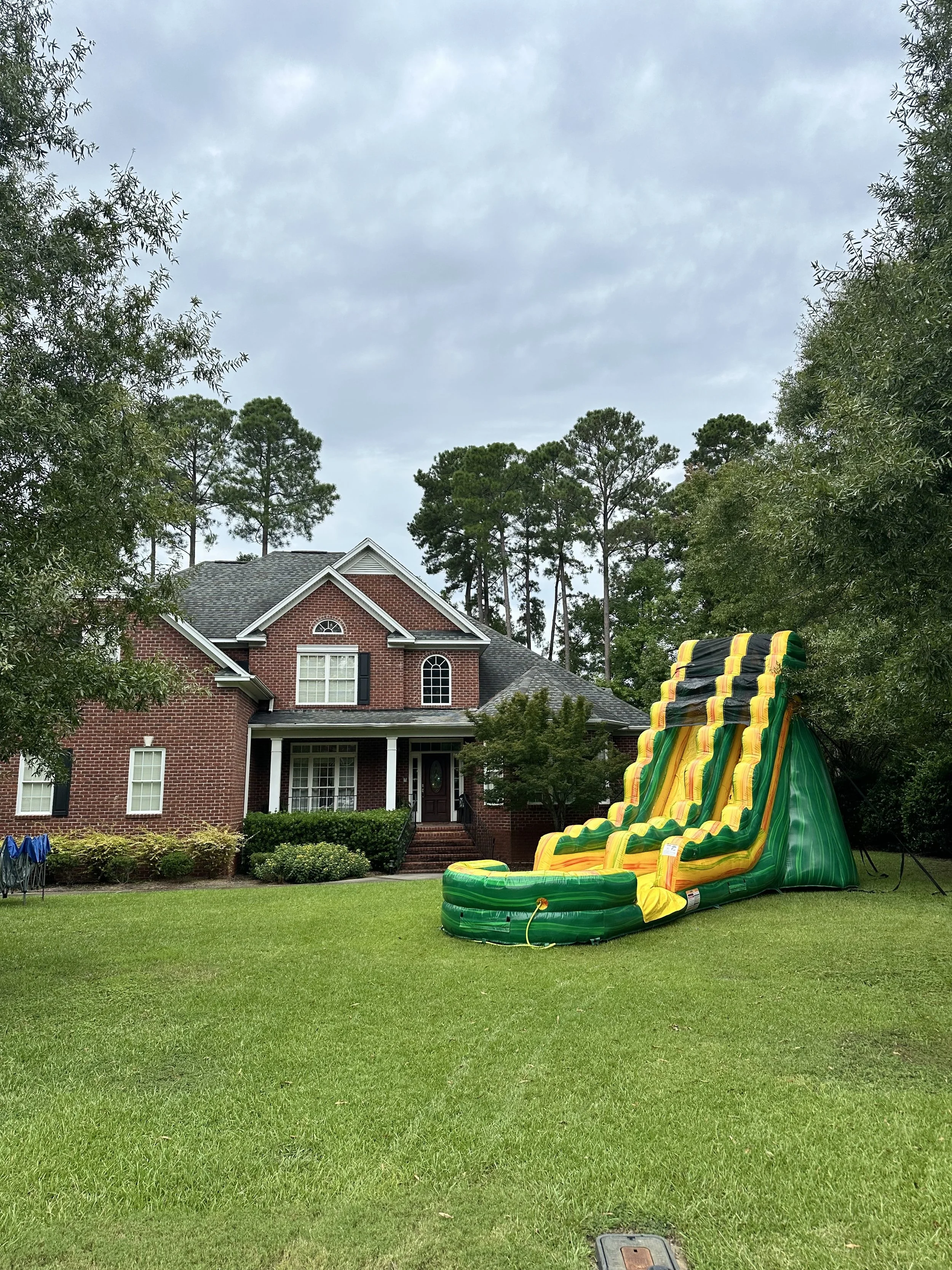 This towering inflatable promises waves of fun as you zoom down its 19-ft long slide with rushing water beneath you.
